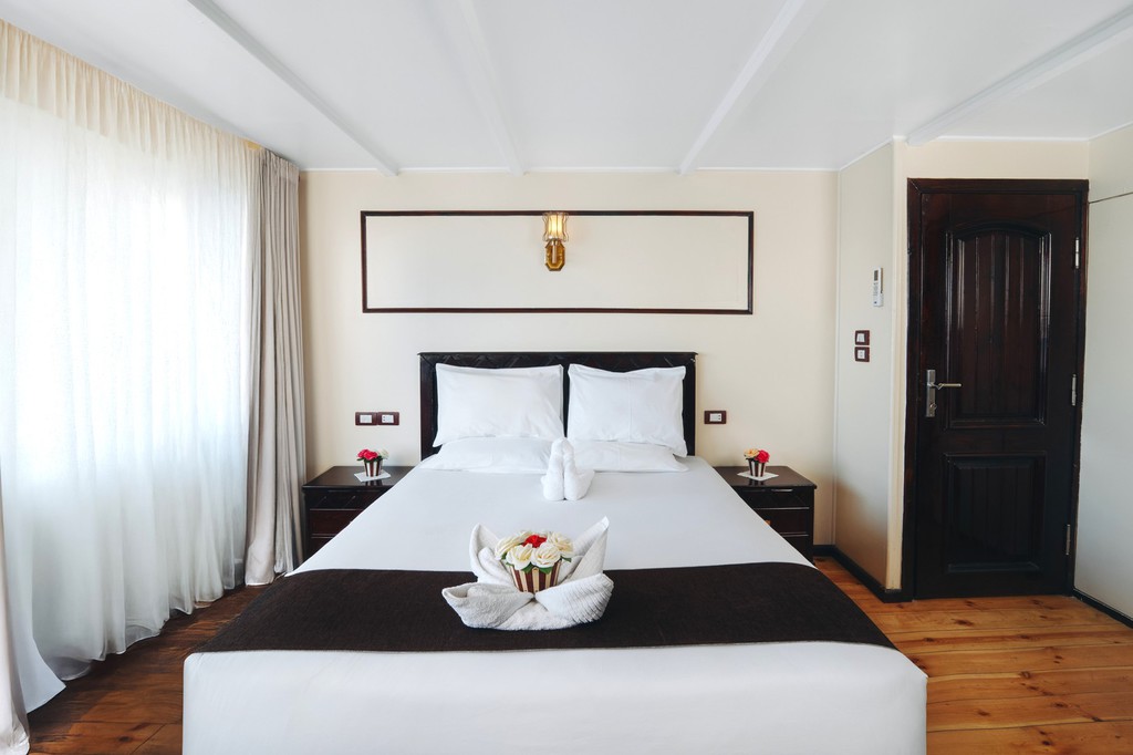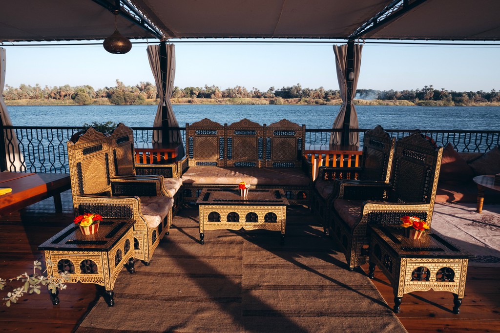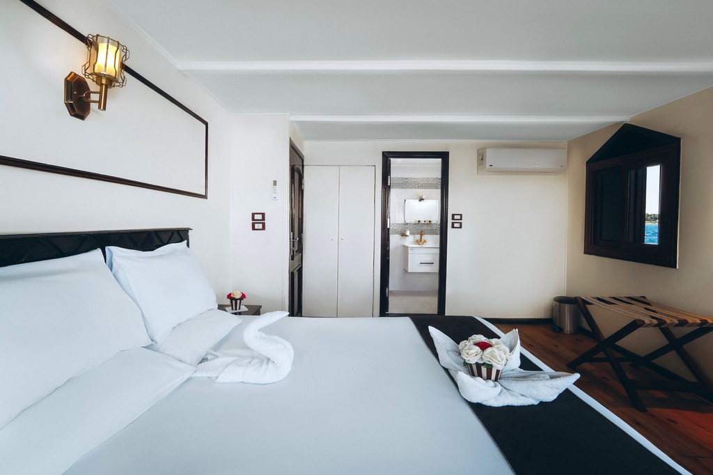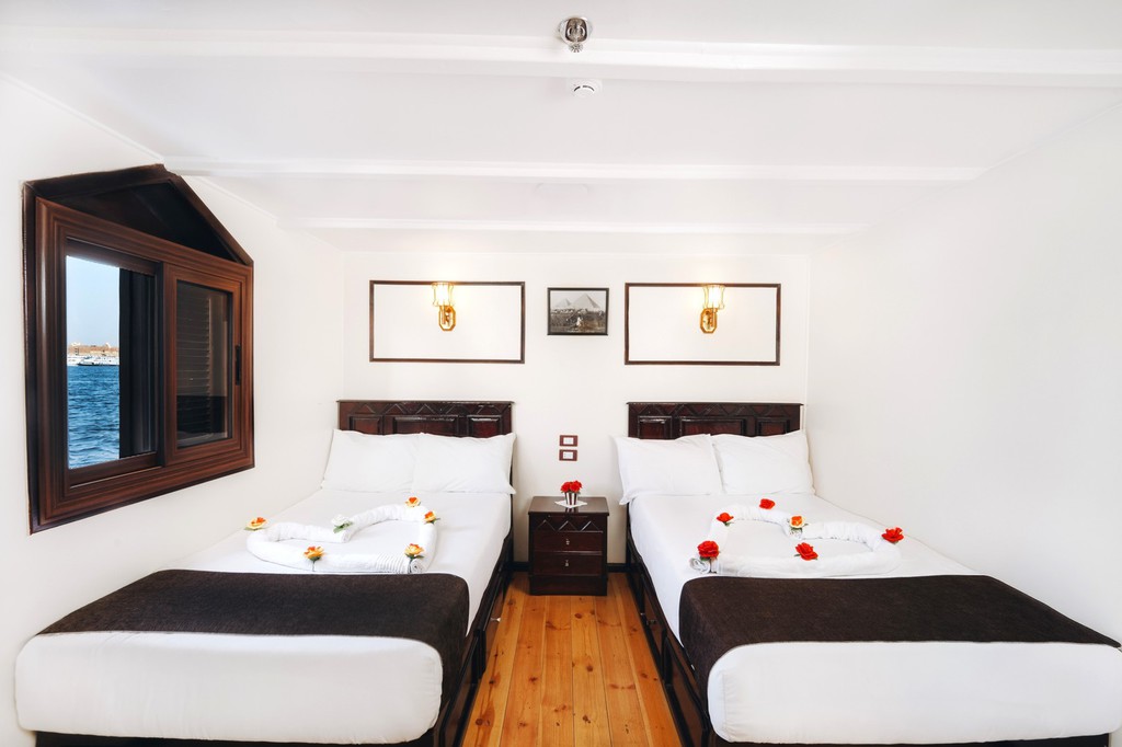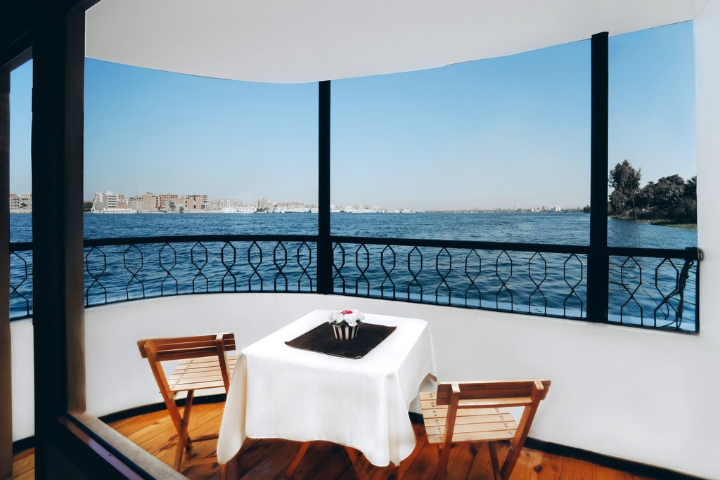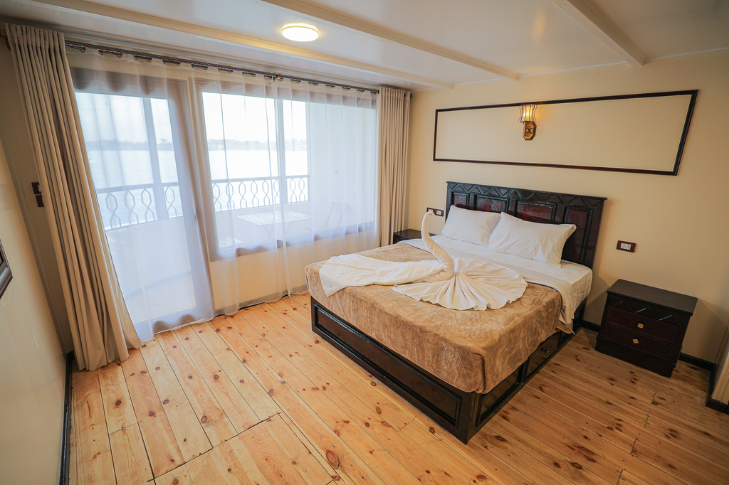Les cabines disposent chacune d’une salle de bain privée ainsi que la climatisation individuelle et d'une fenêtre avec balcon offrant une vue sur les rives du Nil.