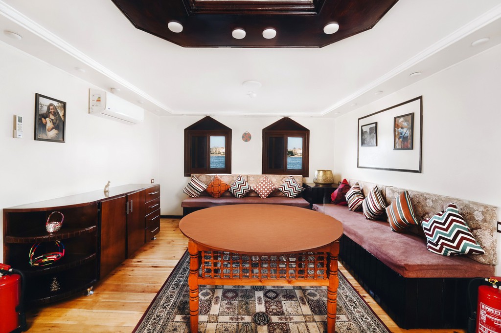 La Dahabyia Queen Tyi IV est un voilier traditionnel égyptien composé de 8 cabines et 2 autres cabines avec terrasse privée pour une capacité totale de 10 cabines.