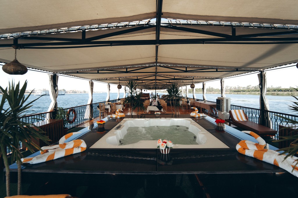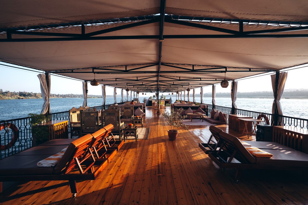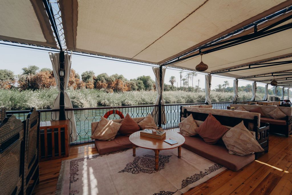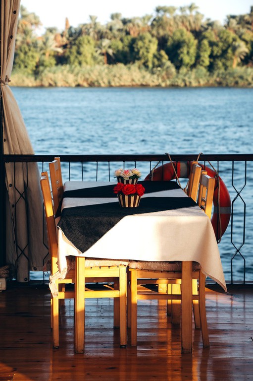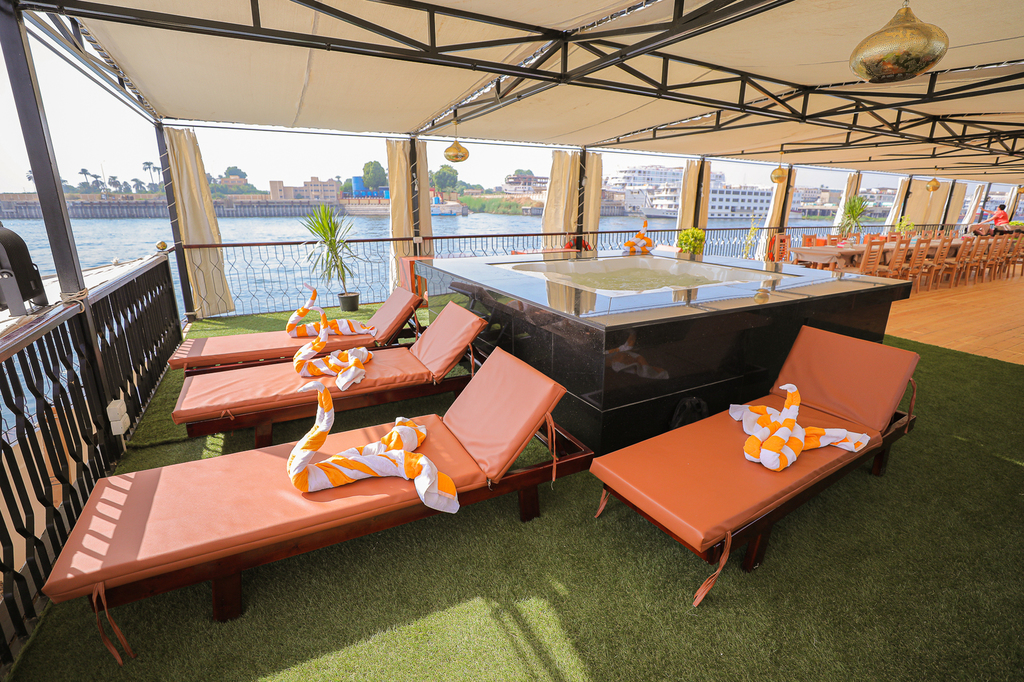 Des spécialités égyptiennes sont préparées à bord par le chef et servis sur le pont supérieur ou dans la salle à manger sur le pont principal, ainsi que des salons et transats en extérieur pour profiter de la beauté des rives du Nil. Inclus dans le forfait, la formule « tout inclus » à bord avec boissons, eau minérale, thé, café, boisson gazeuse et fruits frais servis toute la journée.