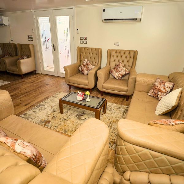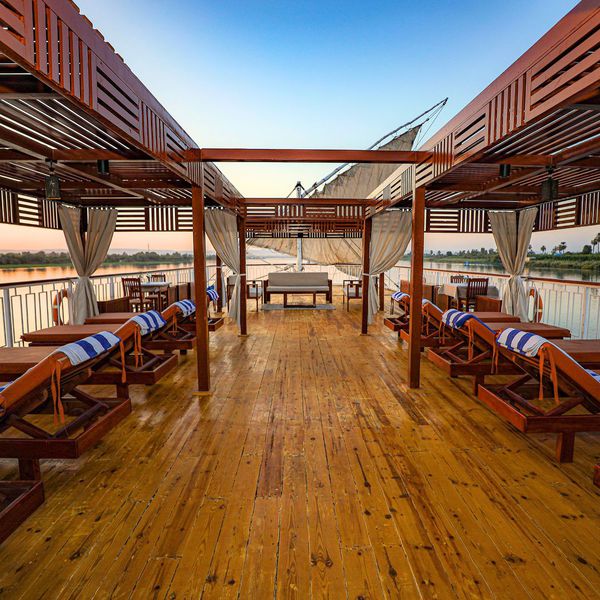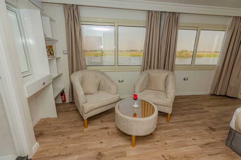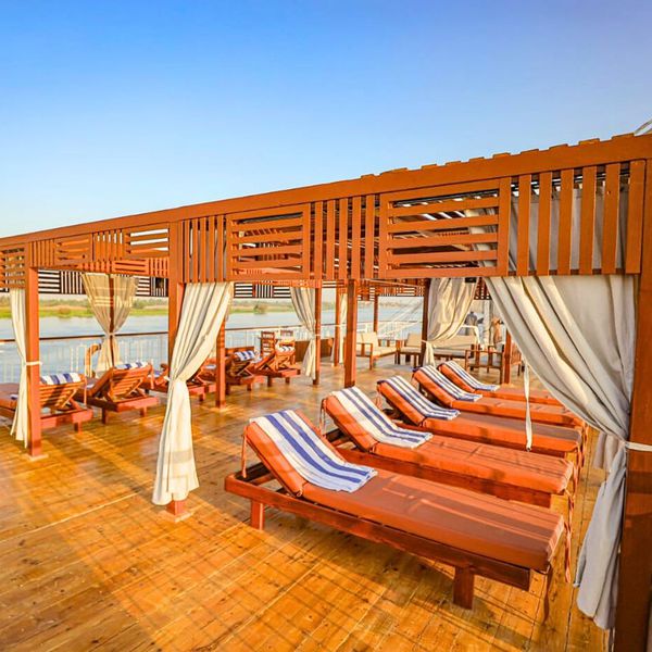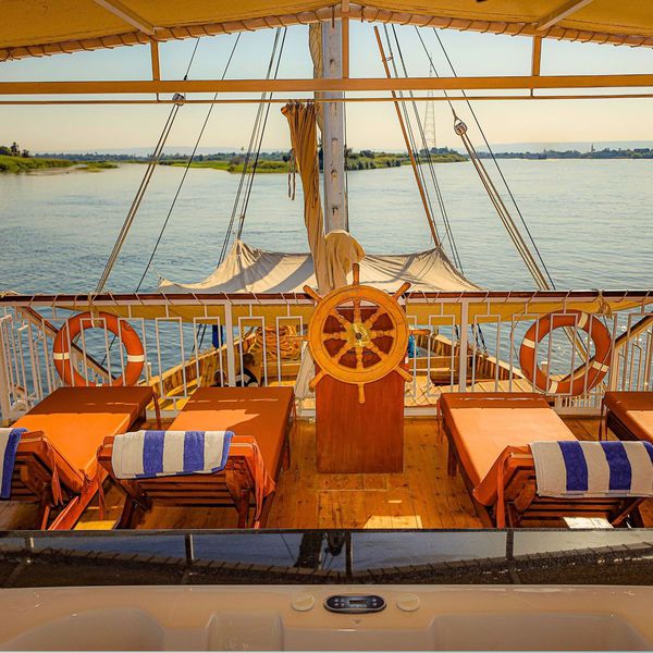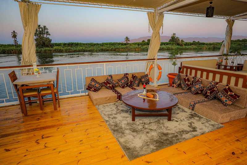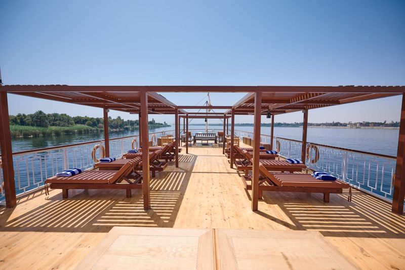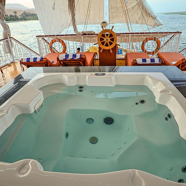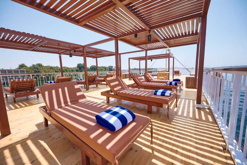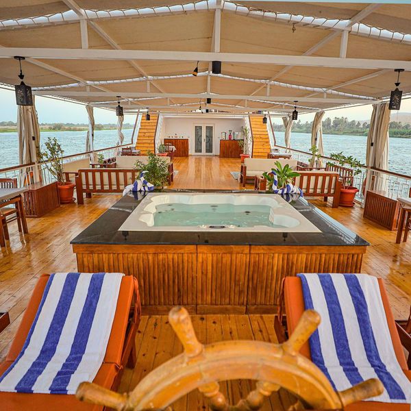 On y retrouve aussi, un Jacuzzi pour vous relaxer, ainsi que des salons et transats vous offrants des moments de détente tout en admirant les merveilleux paysages du Nil.