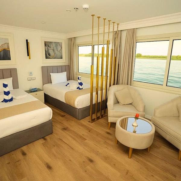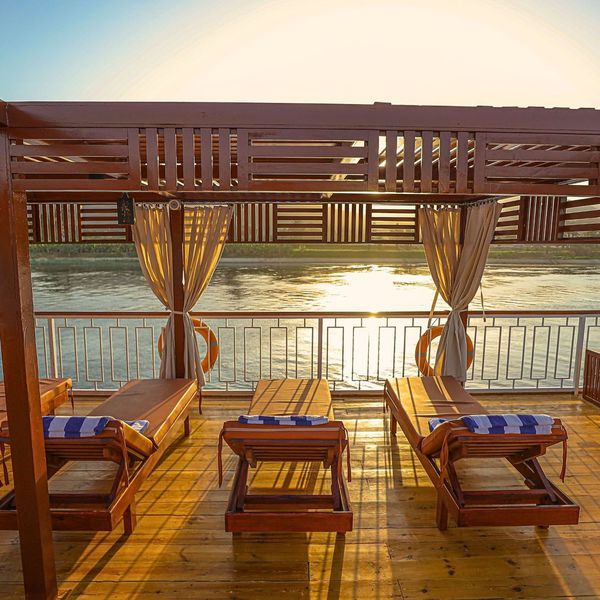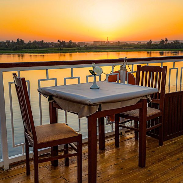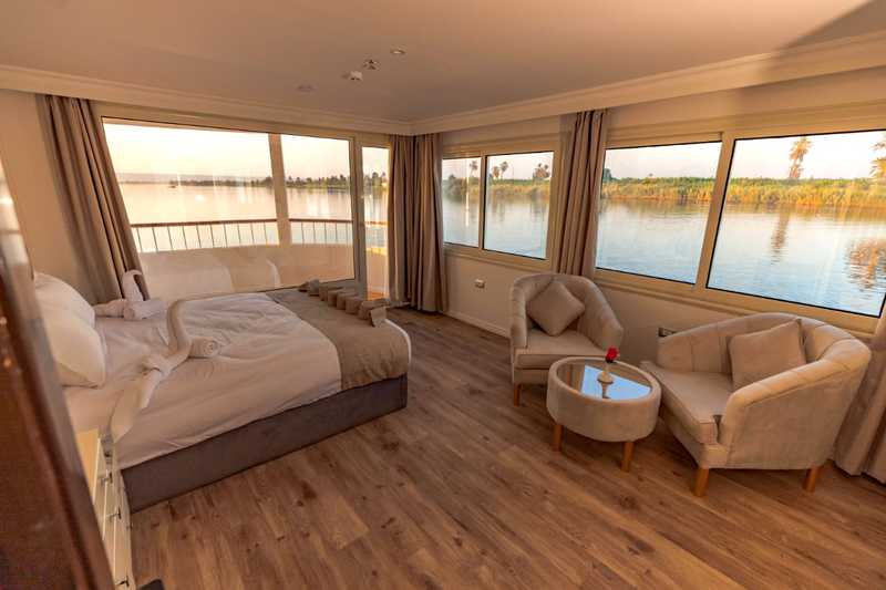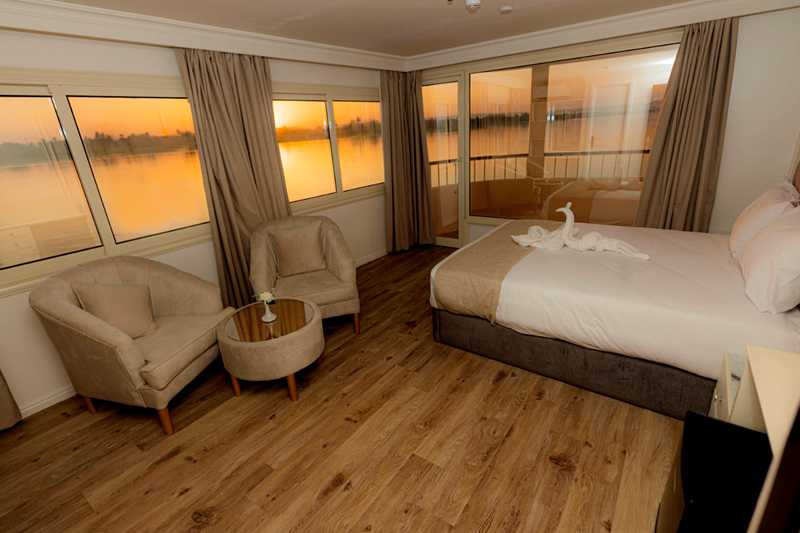 Les Suites sont dotées chacune, d’une terrasse privée pour une expérience encore plus intimiste, tout en profitant des différents paysages qu’offre le Nil et ses rives tout au long de la croisière.