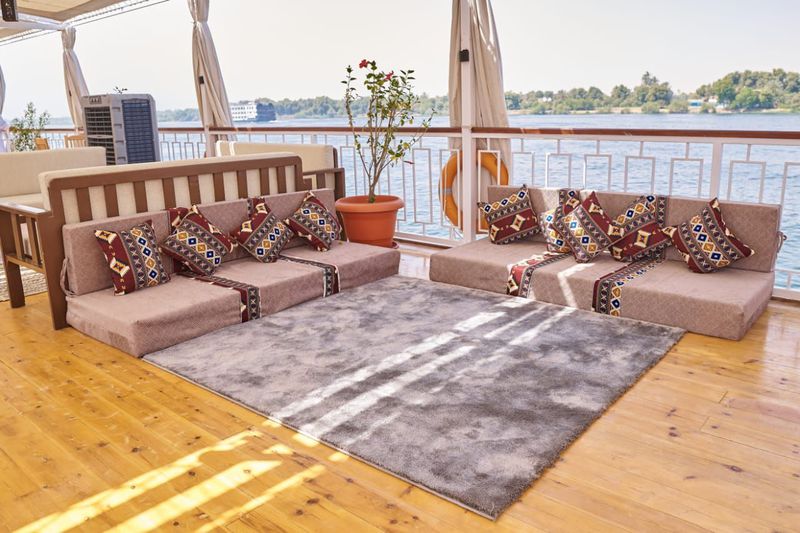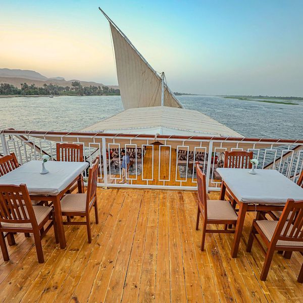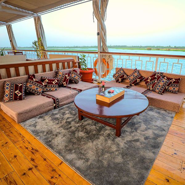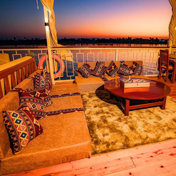 Notre Dahabyia Queen Tyi V allie comme pour nos autres Dahabyias, confort et expérience authentique avec une ambiance chaleureuse et intimiste, et un personnel aux petits soins.