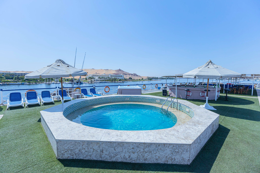 Entièrement rénové en septembre 2023. Il comprend 61 Cabines Standard de 22m² et 4 Suites de 26m², toutes dotées d'une grande fenêtre et salle de bain privée, elles ont été pensées de manière à vous offrir un confort absolu et une vue imprenable sur le Nil et ses magnifiques paysages.