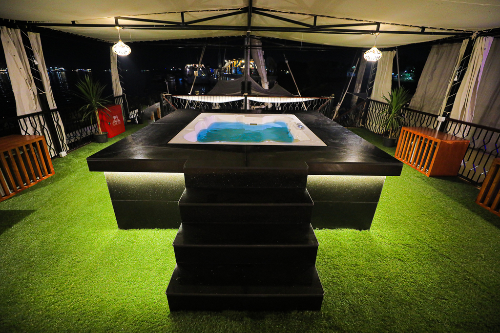 Elle dispose, d’un Jacuzzi sur le pont supérieur pour vous relaxer, ainsi que de salons et transats vous offrants des moments de détente tout en admirant les merveilleux paysages du Nil.