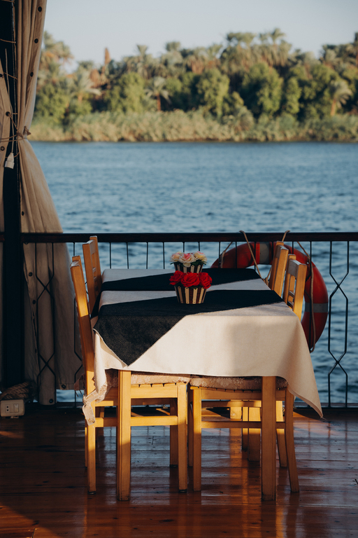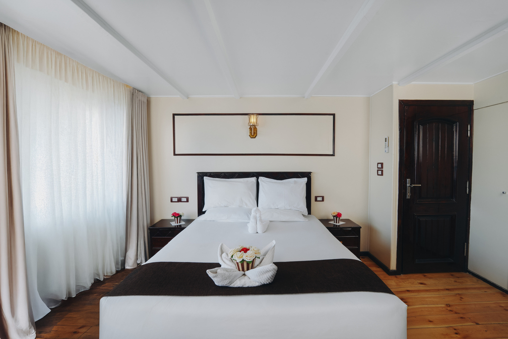 Les suites Junior sont dotées chacune d’un balcon et fenêtre offrant une vue imprenable sur le Nil, quant aux Suites Royales, elles se situent à l’arrière du bateau et disposent chacune d’une terrasse privée pour une expérience encore plus intimiste, tout en profitant des différents paysages qu’offre le Nil et ses rives tout au long de la croisière.