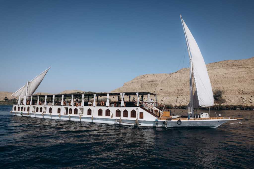 En fonction de la météo et du vent, il est possible que votre dahabyia ait besoin d’être remorquée par un autre bateau sur une certaine distance. Veuillez noter que les conditions de navigation et les horaires de vols, peuvent également modifier les heures et l’ordre des visites.