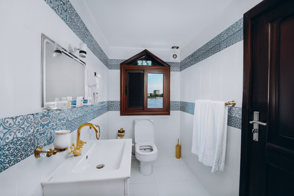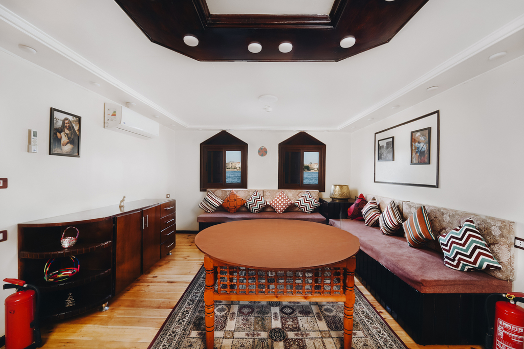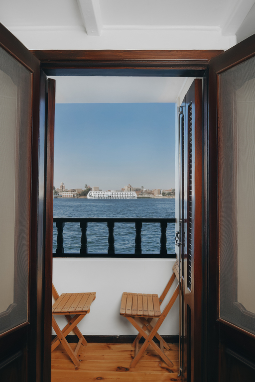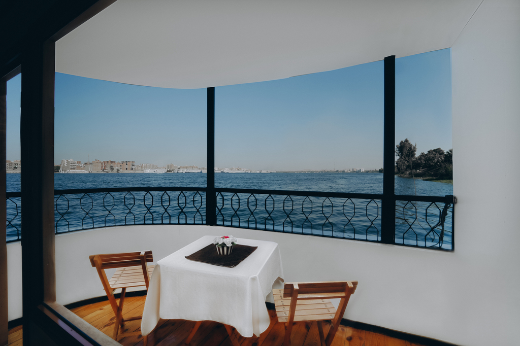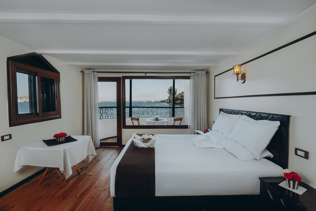 Les cabines de 14m² disposent chacune d’une salle de bain privée ainsi que la climatisation individuelle et deux fenêtres offrant une vue sur les rives du Nil.