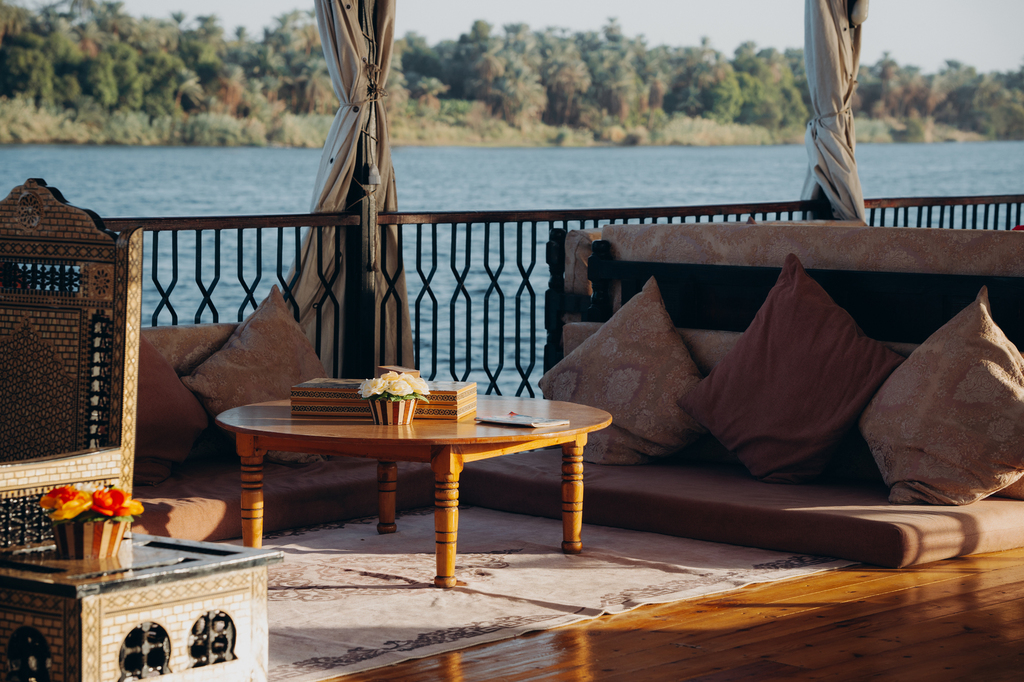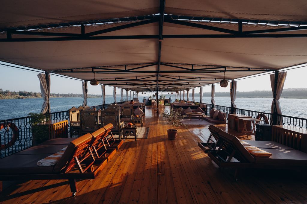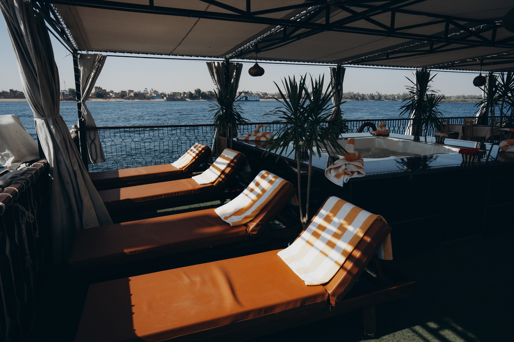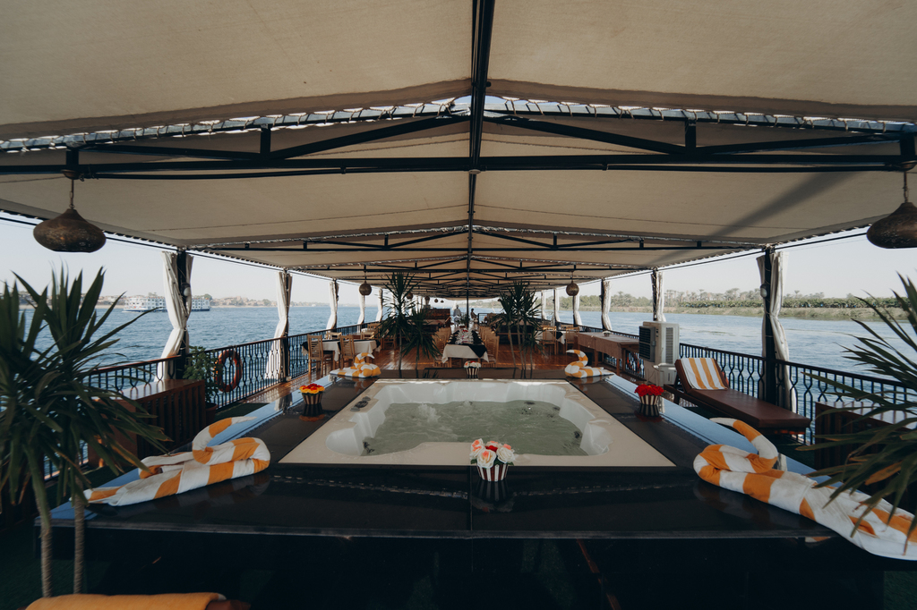 Des spécialités égyptiennes sont préparées à bord par le chef et servis sur le pont supérieur ou dans la salle à manger sur le pont principal, ainsi que des salons et transats en extérieur pour profiter de la beauté des rives du Nil. Inclus dans le forfait, la formule « tout inclus » à bord avec boissons, eau minérale, thé, café, boisson gazeuse et fruits frais servis toute la journée.